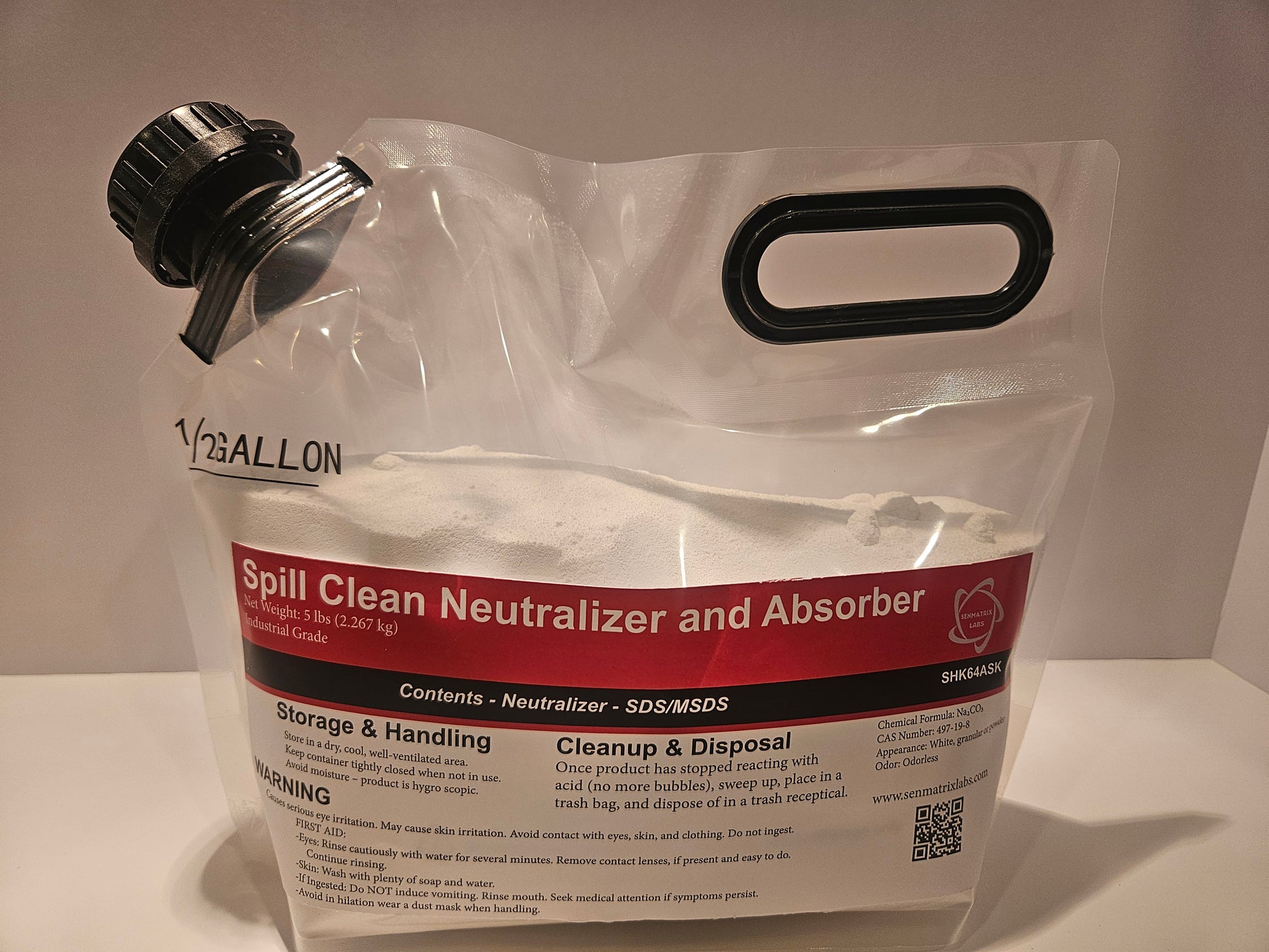 1/2 gallon disposable spill absorber and neutralizer with spout and handle