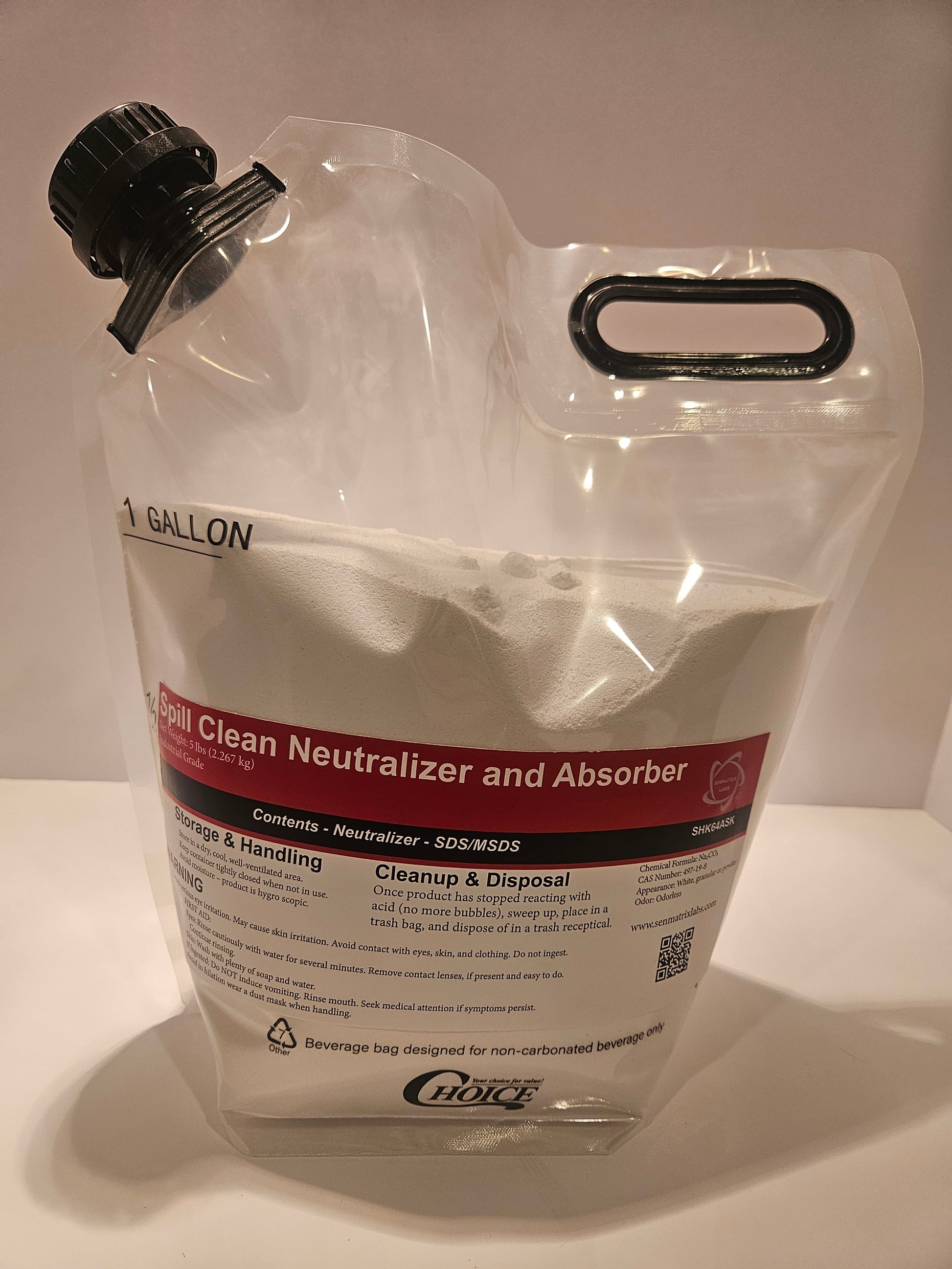 1 gallon disposable spill absorber and neutralizer with spout and handle